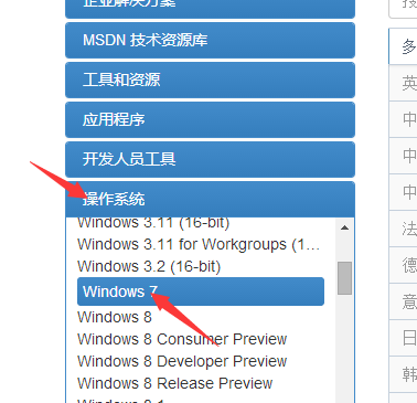 点击左侧操作系统,题主想要的是win7 64位,则点击win7