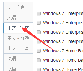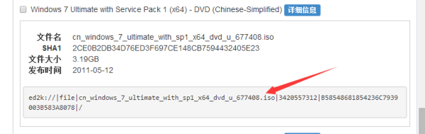 右侧点击中文-简体,然后右侧找到win7旗舰版64位,下载地址如下图红色箭头所示,复制下载地址即可打开迅雷等软件下载