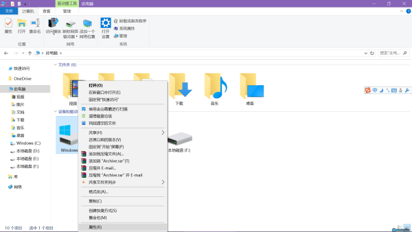 2、其中在系统盘符上鼠标右击选择属性,如图。