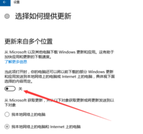 1、为了防止时间时间较长导致系统再次变卡,我们可以做一些小的设置,其中可以将系统自动更新进行关闭,流程为开始菜单-设置-更新与安全-高级选项-选择如何提供更新-其中开启状态变为关闭即可,如图。
