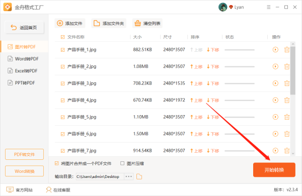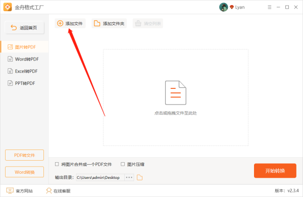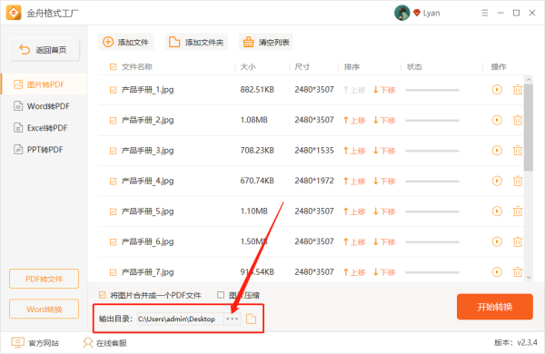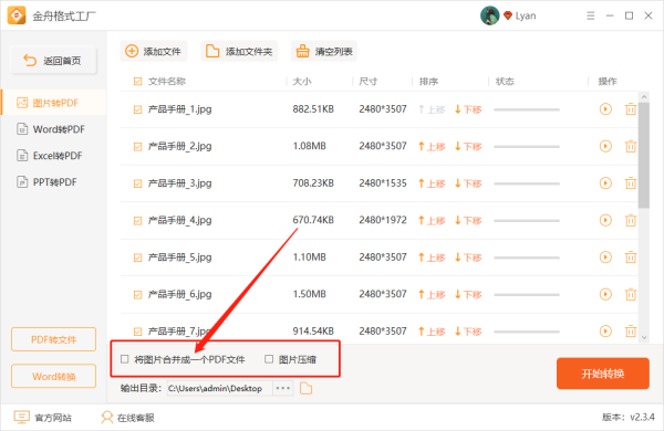 第四步、接着,在软件下方选择是否将图片全部合并成一个PDF;