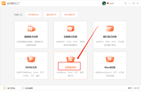 第一步、首先,在电脑上打开软件并选择“文件转PDF”选项;
