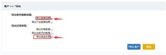 非常简单,如果我们需要导入的模块记录是空的,可以直接使用“导出”功能,按默认条件直接导出即可;如果模块当中已经存在部分记录,那么我们可以先通过“查找”不存在的记录让列表显示空数据,然后再使用“导出”功能,导出条件选择“导出搜索结果”即可;