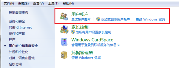 3、再打开用户帐户。