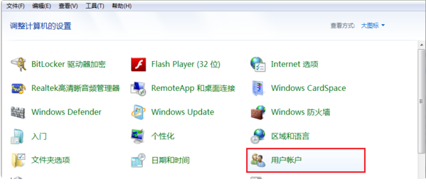 1、使用控制面板的用户帐户关闭管理员帐户,如果查看方式是大、小图标的话,则按下图方式打开用户帐户。