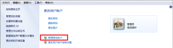 4、打开用户帐户后,点击下方的管理其它帐户。