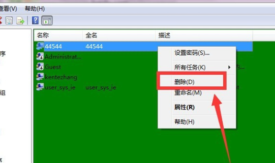 6、或者直接右键点击删除用户也可以。