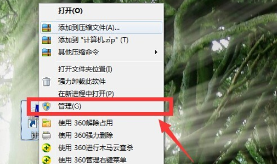 1、鼠标右键点击计算机,然后点击管理。