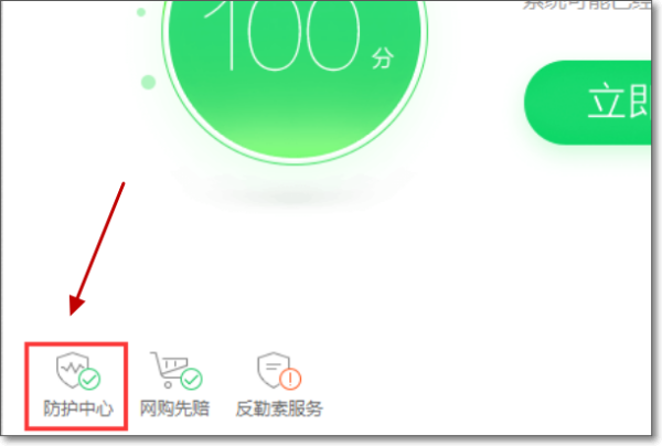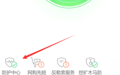 1、首先从任务栏或其他位置启动卫士,在打开后界面左下方,可以看到防护中心,这一图标可以打开,点此进入。
