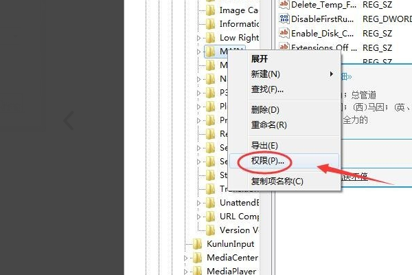 7、这时会打开注册表编辑器,找到注册表,HKEY_LOCAL_MACHINE--SOFWARE--Microsoft--Internet Explorer文件下的MAIN,右键单击main后,在上面菜单中找到 编辑--权限。