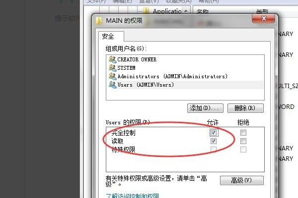 8、点击后在弹出的对话框,单击勾选“完全控制”选项并保存即可成功解决net framework4.0安装未成功0x80240037的问题了。