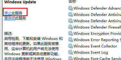 4、然后,完成上述步骤后,单击左上角,单击停止此服务选项,如下图所示,然后进入下一步。