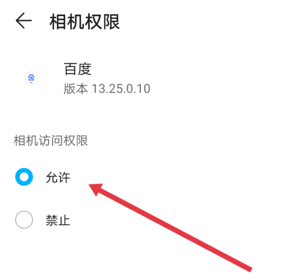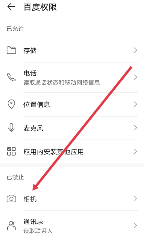 5、在百度权限界面点击【相机】