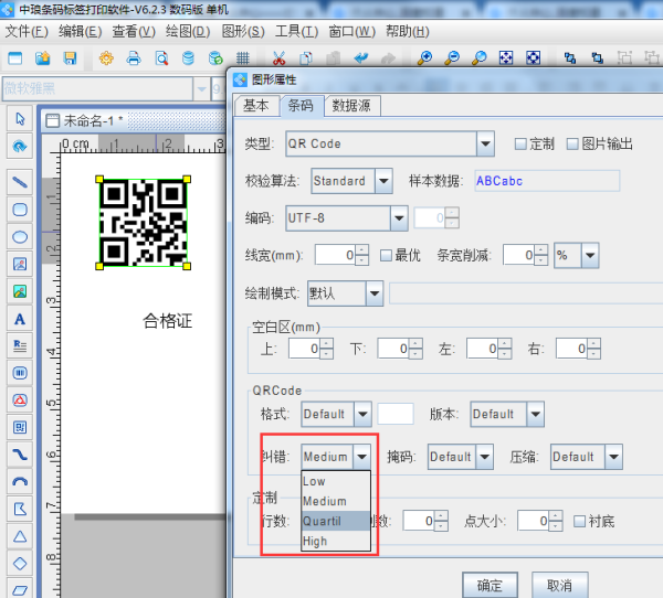 3、二维码本身识别率低(解决方案:换一个专业的二维码制作软件和打印精度高的打印机),下面这个软件可以调整二维码的纠错级别,当纠错级别调整到高的时候可以实现即时二维码被破损了也可以正常被识别的效果。