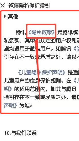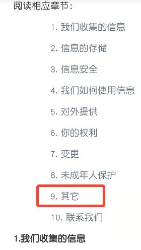2、点击“隐私保护指引”,下拉页面,找到9.其它。