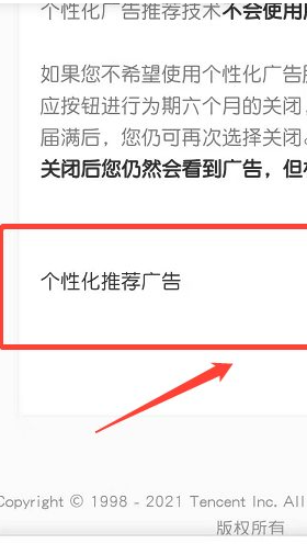 7、下拉页面,可以看到个性化推荐广告。点击取消。