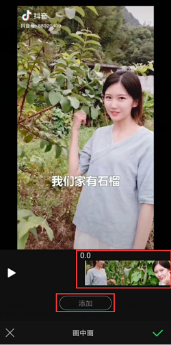 进入新的页面后,拖动进度条找到需要添加画中画的场景,然后点击“添加”。