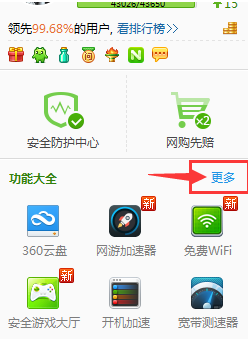 2、点击360安全卫士右下角“更多”按钮,添加工具。