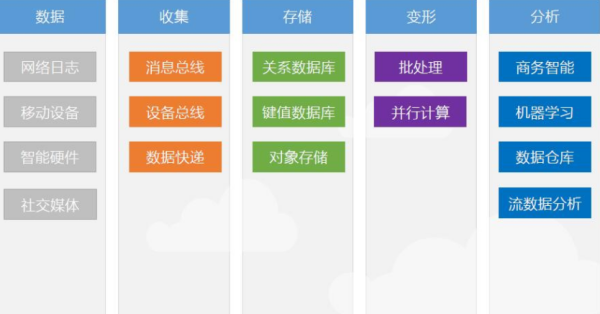 存储:收集好的数据需要根据成本、格式、查询、业务逻辑等需求,存放在合适的存储中,方便进一步的分析。