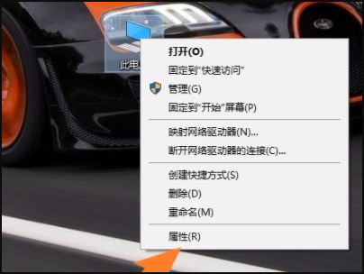1、进入系统桌面后,在此电脑上点击鼠标右键,选择属性。如图所示。