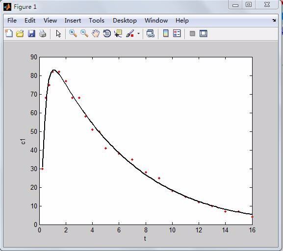 四、用a=nlinfit(t,x,func,t0)命令,求解自定义函数的系数