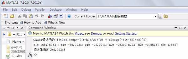 二、自定义函数与实际数据有很大的偏差,实际数据不能满足自定义函数拟合要求。从t—x的散点图(可以用plot(t,x)命令)(说明,这里用x代替c1)可以看到,数据符合高斯函数,即 f(t)=a1*exp(-((t-b1)/c1)²) + a2*exp(-((t-b2)/c2)²)