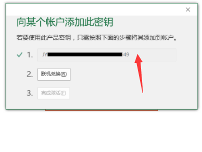 5、按照提示完成激活,将会在账号下方看见激活码,需要将激活码保存,以后换其他设备也可以登录。完成激活后,返回office激活页面,点击完成激活,并选择在微软账号生成的激活码。