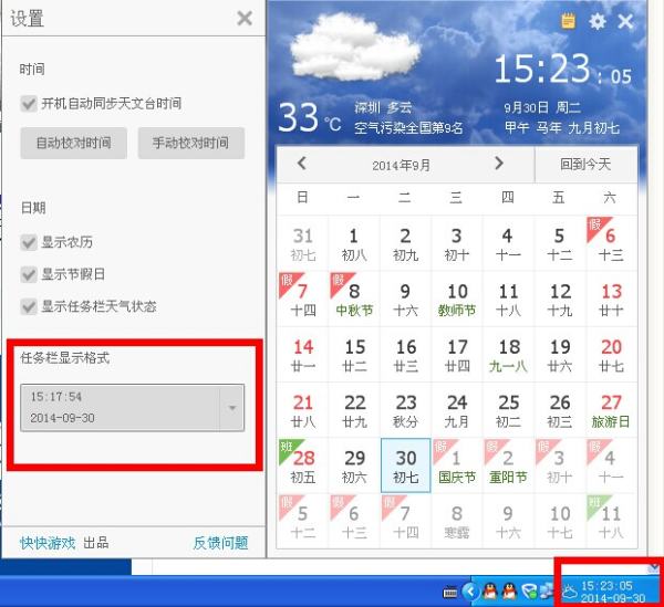 怎么点让击右下角的时间显示的是360的日历