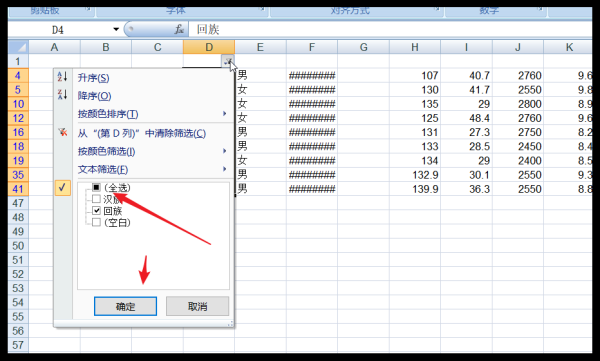 4、在筛选的选项卡中,点击选择出需要筛选出的数据,然后点击“确定”。