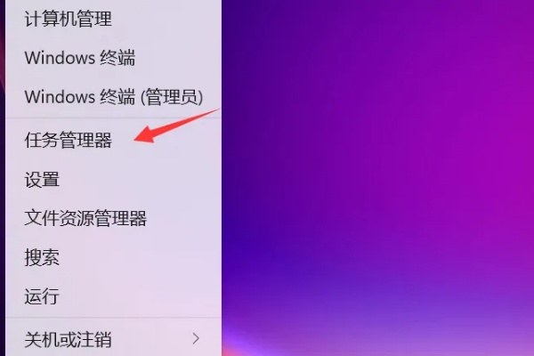 1、右键单击开始按钮,选择任务管理器,如下图所示。