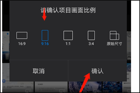 5、这时出现画面比例选择,选择9:16,点击确认。