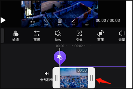 9、之后点击下方的进度显示部分,选中图片,拖动长度与视频长度一致。