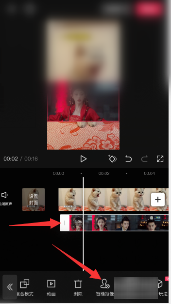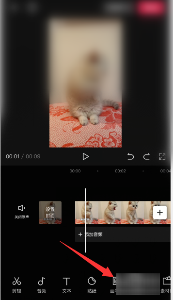 2. 画中画设置法:点击画中画——添加背景视频(这样背景的视频就会在原视频的上面)——点击添加的画中画背景视频切主轨——将原视频切画中画——这样原视频就在背景视频上方了,可根据需要调整位置即可,设置完成