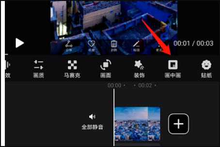 点击底部“新增画中画”选项,导入需要的视频素材。