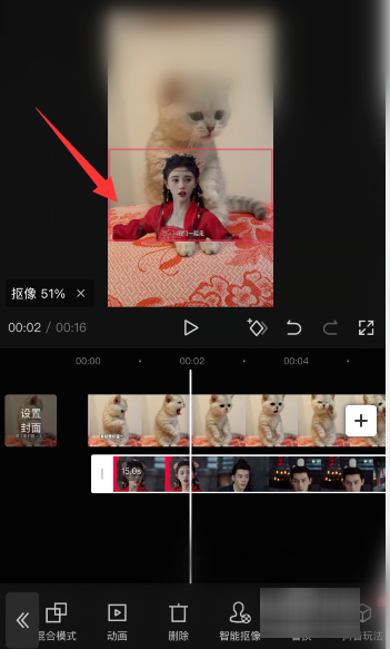 等待抠像完成去除原视频背景即可(如果要保留完整原视频的,就不进行抠像这一步骤)。