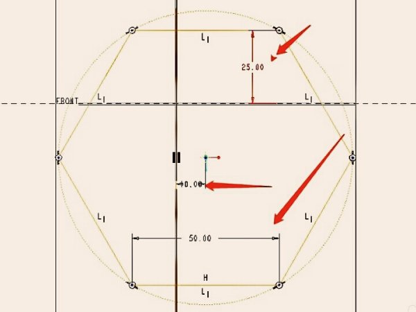 4、这样一来通过改变图示尺寸,即可实现proe画正六边形了。
