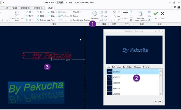 步骤3:下次草绘的时候调用,在草绘【palette】中,直接拖进草绘区域