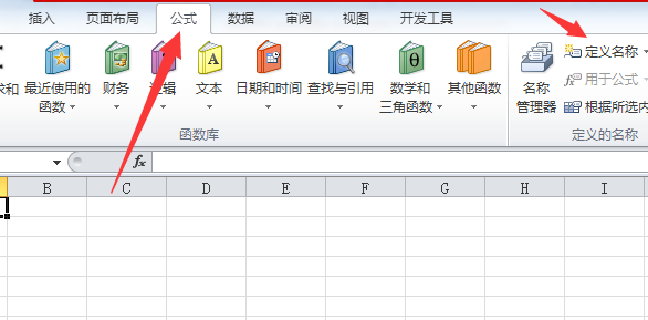 2、在sheet1中的A1列输入数据源,选中此列,在“公式”选项卡,单击“定义名称”。