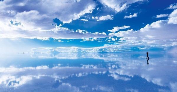 玻利维亚的乌尤尼盐沼也有这种很美的意境: