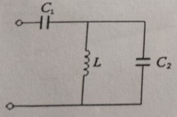 ω²LC2-1+ω²LC1=0,ω=1/√[L(C1+C2)]。