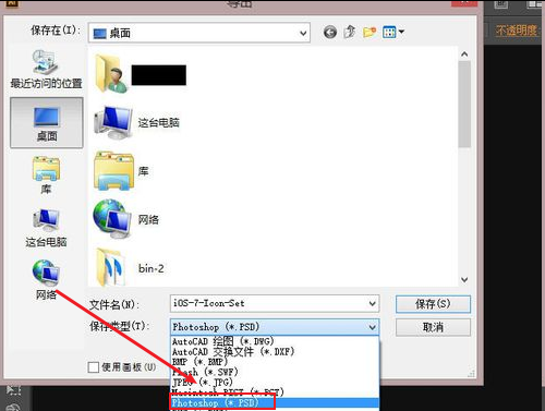 第四,弹出导出窗口,选择类型为.psd模式,点击【保存】选项按钮即可。