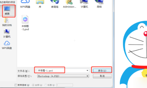 2丶弹出的对话框中保存类型选择PSD,点击保存。