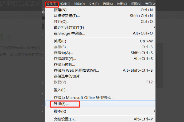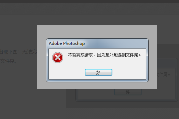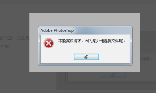 1、当我们打开psd文件出现下图:无法完成请求,因为遇到意外的文件尾。
