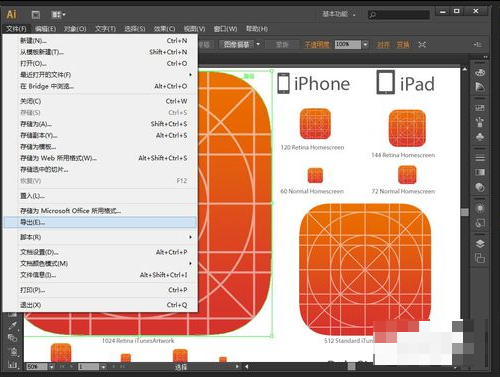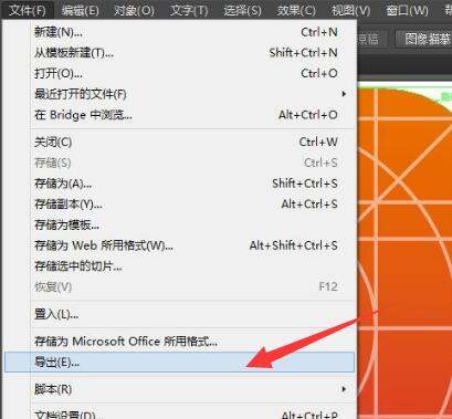 第三,把这个文件在AI(Adobe Illustrator)中打开,选择文件下的【导出】命令。