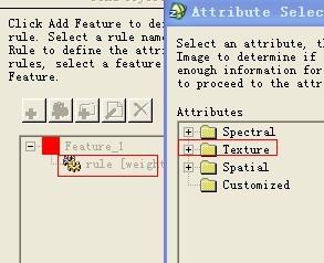 你用的是ENVIzoom吗,先分割processing----featureextraction,分割到第四步可以生成特征:包括空间特征、光谱特征、纹理特征,然后classifybycreatingrules,next-----右键点击rule,addattributetorule,选择纹理特征即可。