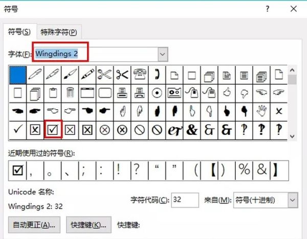 在打开的符号对话框中,字体里面选择 Wingding2,就可以看见需要的符号