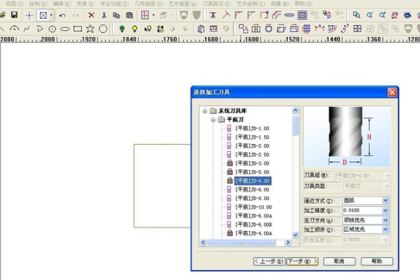 5、“选择加工刀具”,就以Φ4的刀来加工;如图蓝色底纹“【平底】JD-4.00,点击“下一步”;
