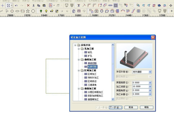 4、“设定加工范围”,也就是我们常说的应该如何加工,这里的例子是“方块”,也就是要进行外部切削;