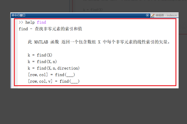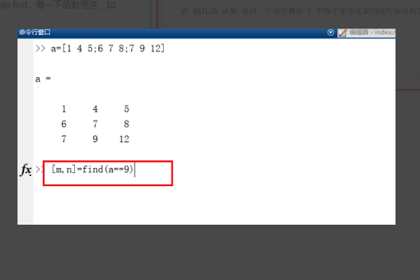 1、我们首先需要知道matlab数组找某个值的坐标,是使用find函数,可以在命令行窗口中输入helpfind,看一下函数用法,如下图所示: