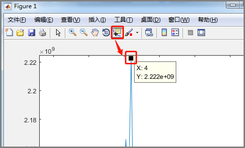 2、在图形界面窗口中,工具栏上的[数据光标]工具,然后单击需要查看坐标值的数据点上的左按钮。